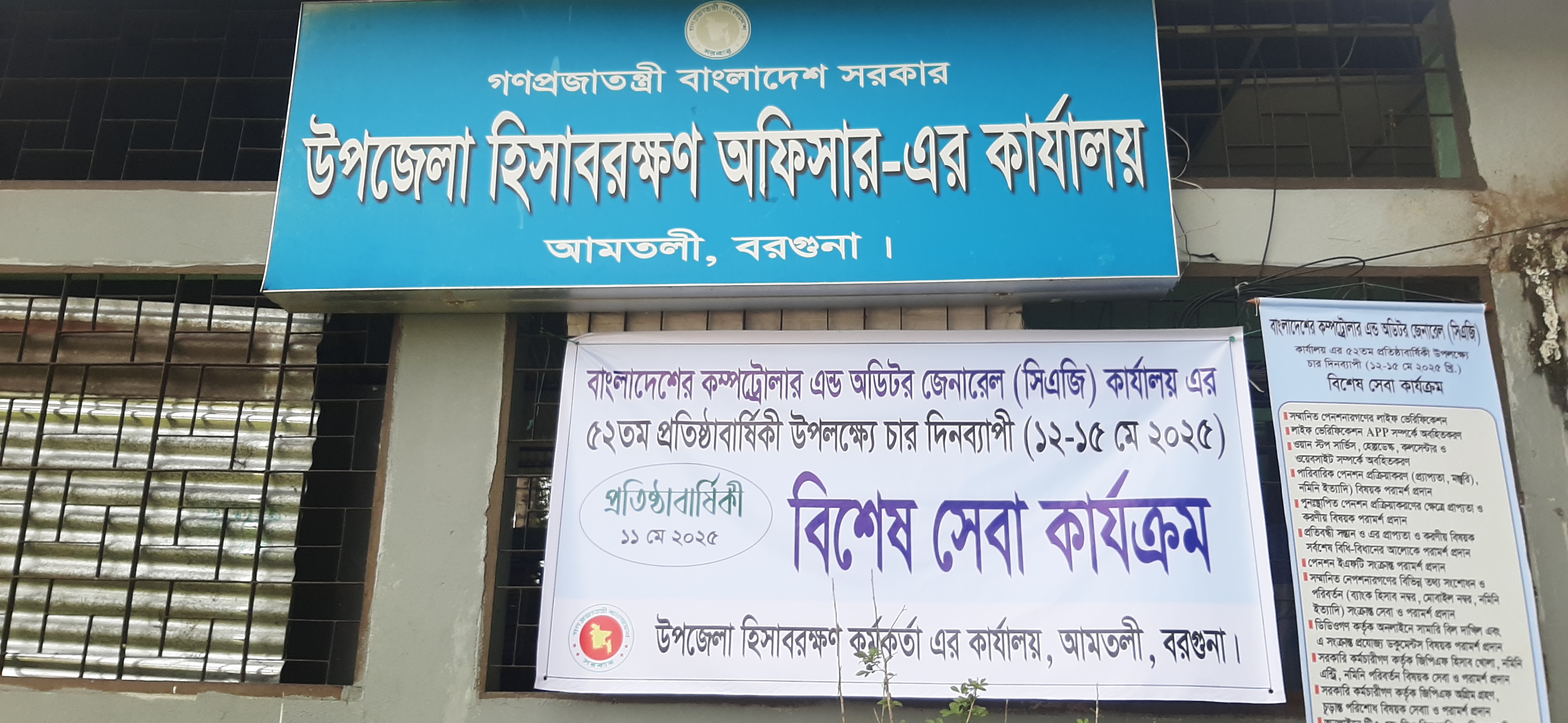 ১ ২০২২ সালে নিয়োগপ্রাপ্ত জুনিয়র অডিটরগণের স্থায়ীকরণ (কনফারমেশন অব সার্ভিস) ২৬-১১-২০২৫ দেখুন ২ জনাব মোঃ সাইফুল ইসলাম, কম্পিউটার মুদ্রাক্ষরিক এর শ্রান্তি ও চিত্ত বিনোদন অফিস আদেশ। ২৬-১১-২০২৫ দেখুন ৩ ২০২২ সালে নিয়োগপ্রাপ্ত কম্পিউটার মুদ্রাক্ষরিকগণের স্থায়ীকরণ (কনফারমেশন অব সার্ভিস) ০২-০৯-২০২৫ দেখুন ৪ অডিটরের ফিডার পদধারী খসড়া গ্রেডেশন (২য় বার প্রকাশ) ০২-০৯-২০২৫ দেখুন ৫ অত্র কার্যালয়ের দায়িত্বভার হস্তান্তর এবং গ্রহন। ২১-০৮-২০২৫ দেখুন ৬ অর্থ বছর ২০২৪-২৫ খ্রিঃ তারিখের পরিচালন ও উন্নয়ন খাতের বিল দাখিলের সর্বশেষ তারিখ ২২/০৬/২০২৫ খ্রিঃ। শুধুমাত্র ফেরত বিলের ক্ষেত্রে বিল দাখিলের সময়সীমা ২৫/০৬/২০২৫ খ্রিঃ। ২৬-০৫-২০২৫ দেখুন ৭ দায়িত্বভার হস্তান্তর এবং গ্রহণ সংক্রান্ত ২৪-০৫-২০২৫ দেখুন ৮ বাংলাদেশের কম্পট্রোলার এন্ড অডিটর জেনারেল (সিএজি) কার্যালয় এর ৫২ তম প্রতিষ্ঠাবার্ষিকী উপলক্ষ্যে চার দিনব্যাপী (১২-১৫ মে ২০২৫) বিশেষ সেবা কার্যক্রম ১২-০৫-২০২৫ দেখুন ৯ হিসাবরক্ষণ অফিসে বিল জমা ও নেয়ার ক্ষেত্রে ব্যক্তি নির্দিষ্টকরণ প্রসঙ্গে। ২০-০৪-২০২৫ দেখুন ১০ ২০২৪-২৫ অর্থ বছরেরর হিসাবেরর কোডভিত্তিক বাজেট ও ব্যয় এর (Reconciliation) সংগতিসাধন প্রসঙ্গে। ২০-০৪-২০২৫ দেখুন